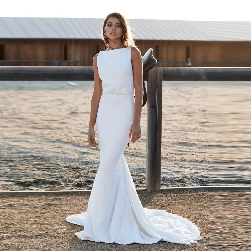 Graceful White Mermaid Satin Wedding Dresses Square Neck Lace Appliques Garden Wedding Gown Sweep Train Button Back Bridal Dress Mermaid Tail Wedding Dress Mermaid Wedding Dress Pattern From Wevens 114 6 Dhgate Com