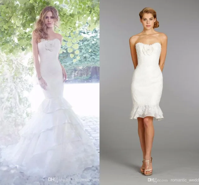 Sexy Lace Mermaid Wedding Dresses Spaghetti Straps Bridal Gowns With Detachable Skirt Babyonlinedress Com