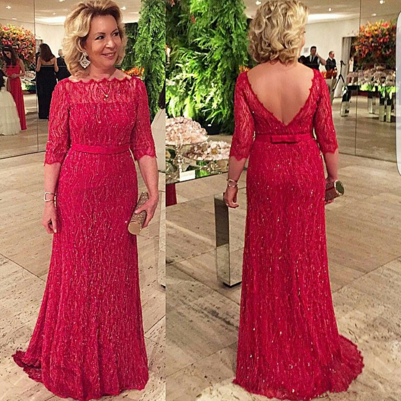 Red A Line Mother Of The Bride Dresses With 3 4 Long Sleeves