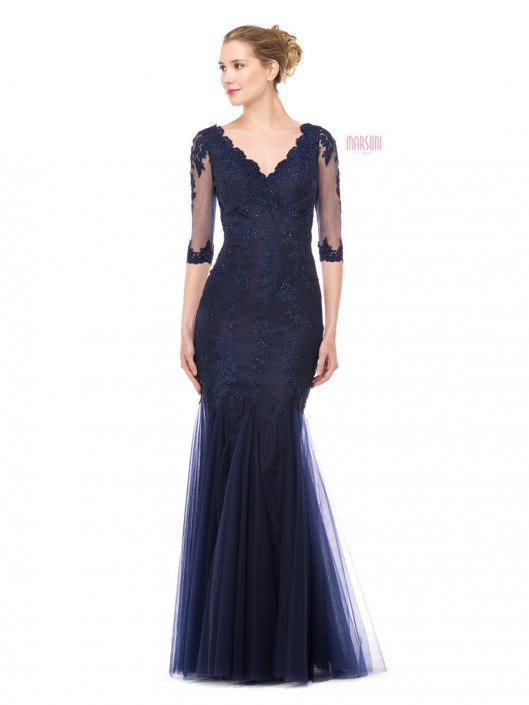 Size 14 Slate Blue Marsoni By Colors M162 Sheer Mothers Dress