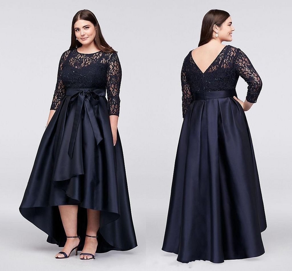 Elegant Dark Navy Lace Plus Size Mother Of The Bride Dresses 3 4