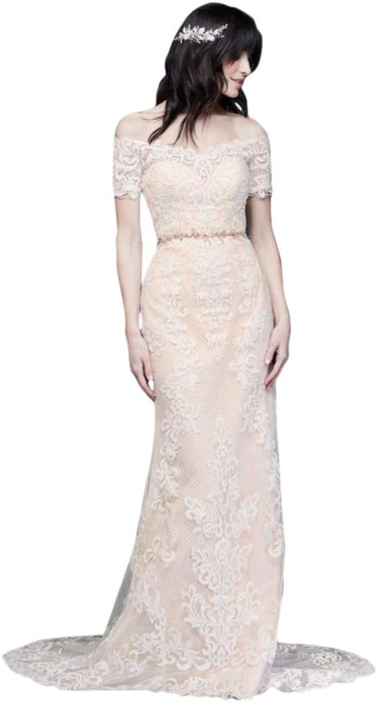 Amazon Com Off The Shoulder Lace Sheath Wedding Dress Style V3958 Clothing