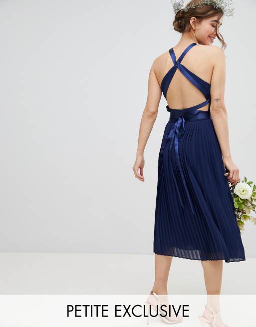 Tfnc Petite Pleated Midi Bridesmaid Dress With Cross Back And Bow
