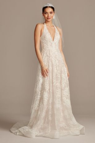 Beaded Lace Halter A Line Wedding Dress David S Bridal