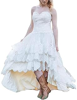 Liliesdresses Women S Hi Lo Tea Length Bridal Gown 3 4 Sleeves Applique Garden Dress Plus Size Wedding Dress White 24
