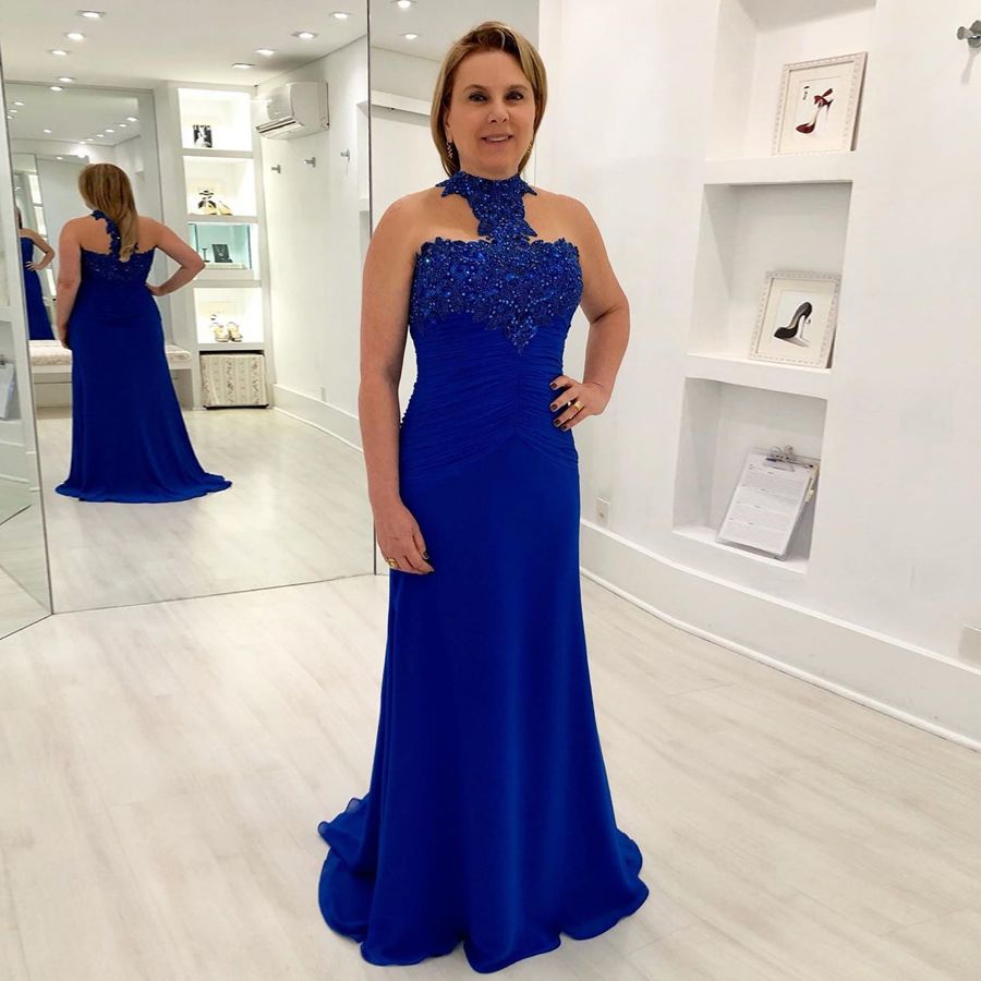 Blue Column Beaded Mother Of The Bride Dresses Halter Neck