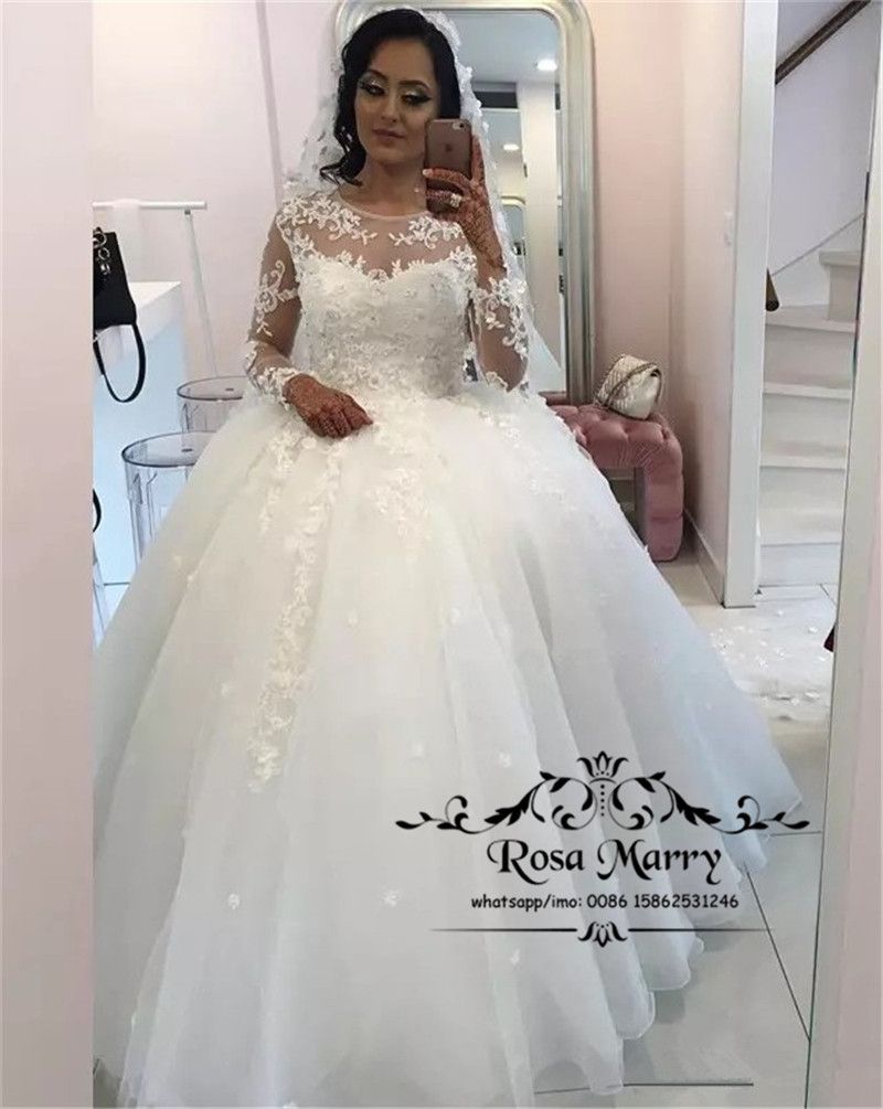 Luxury Vintage Lace Ball Gown Wedding Dresses 2019 Long Sleeves