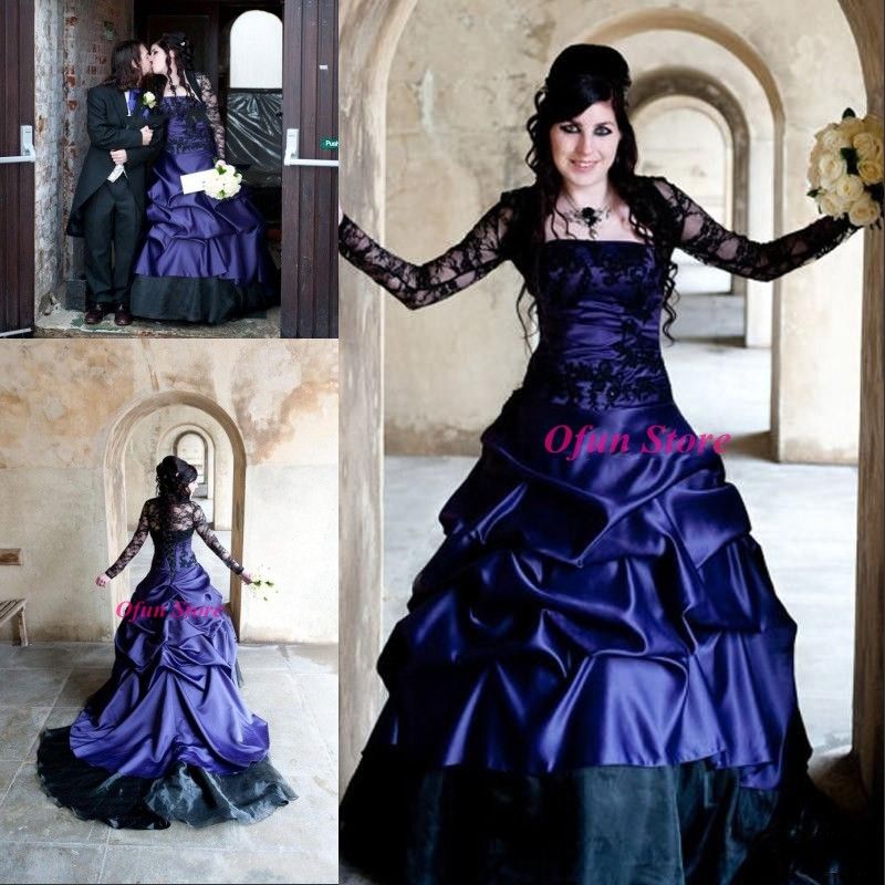 Vintage Gothic Plus Size Long Sleeve Wedding Dresses Sexy Purple