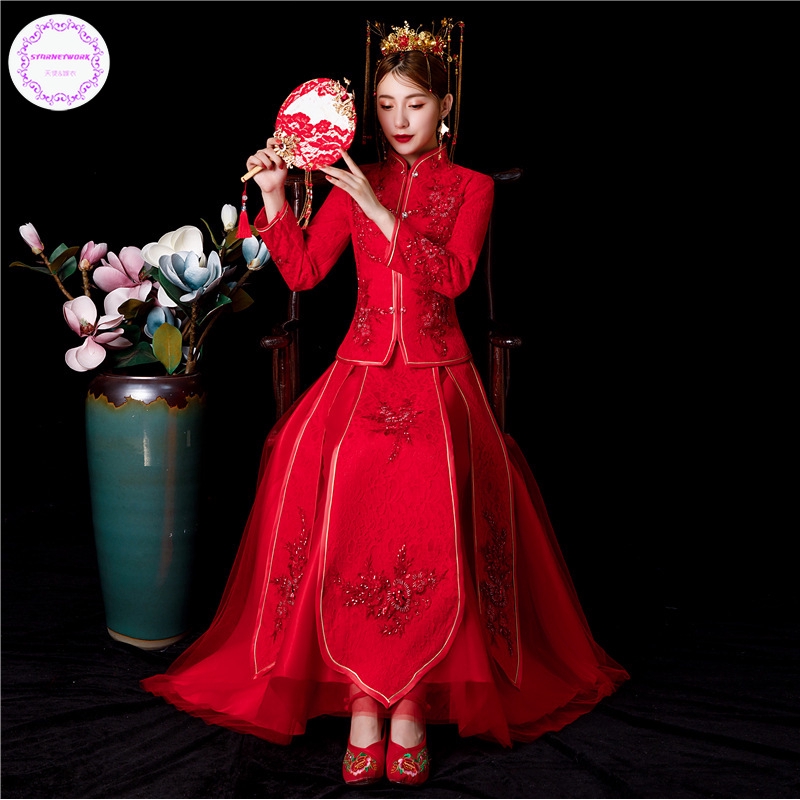 Autumn New Bride Wedding Dress Wedding Dresses Wedding Red Long