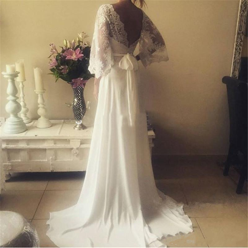 Sheath Lace Boho Wedding Dresses With Removable Sleeves Vw1092