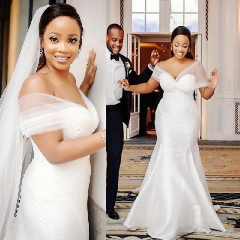 Simple Mermaid Wedding Dresses African Wear Satin And Tulle Off