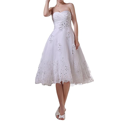 Kivary Women S White Sweetheart Floral Beaded Tea Length Short