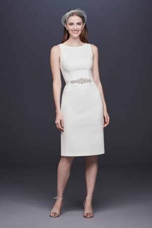 Short Stretch Crepe Wedding Dress With Beaded Belt David S Bridal