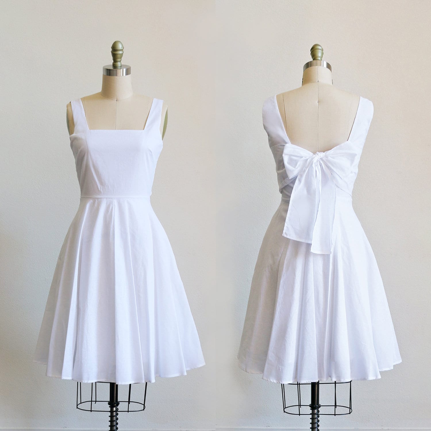 Emma White Cotton Elopement Dress With Bow Short White Etsy