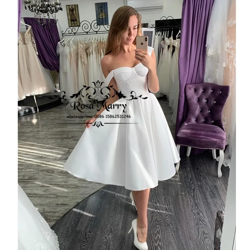 New Plus Size Short White Wedding Dresses 2020 A Line Off Shoulder