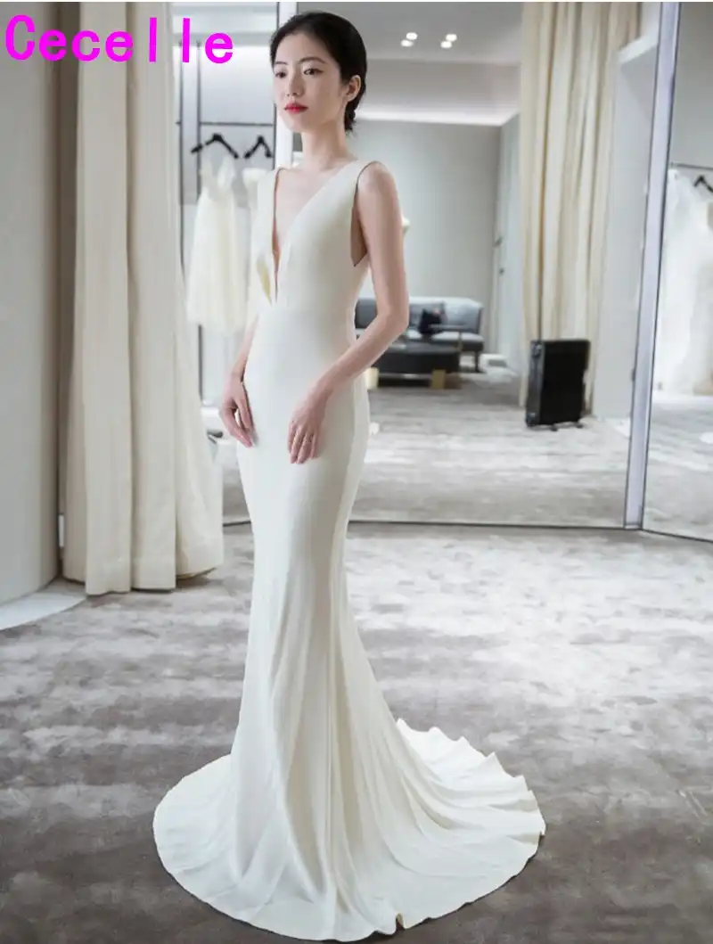 Robe De Marie Deep V Neck Sexy Simple Boho Wedding Dress With