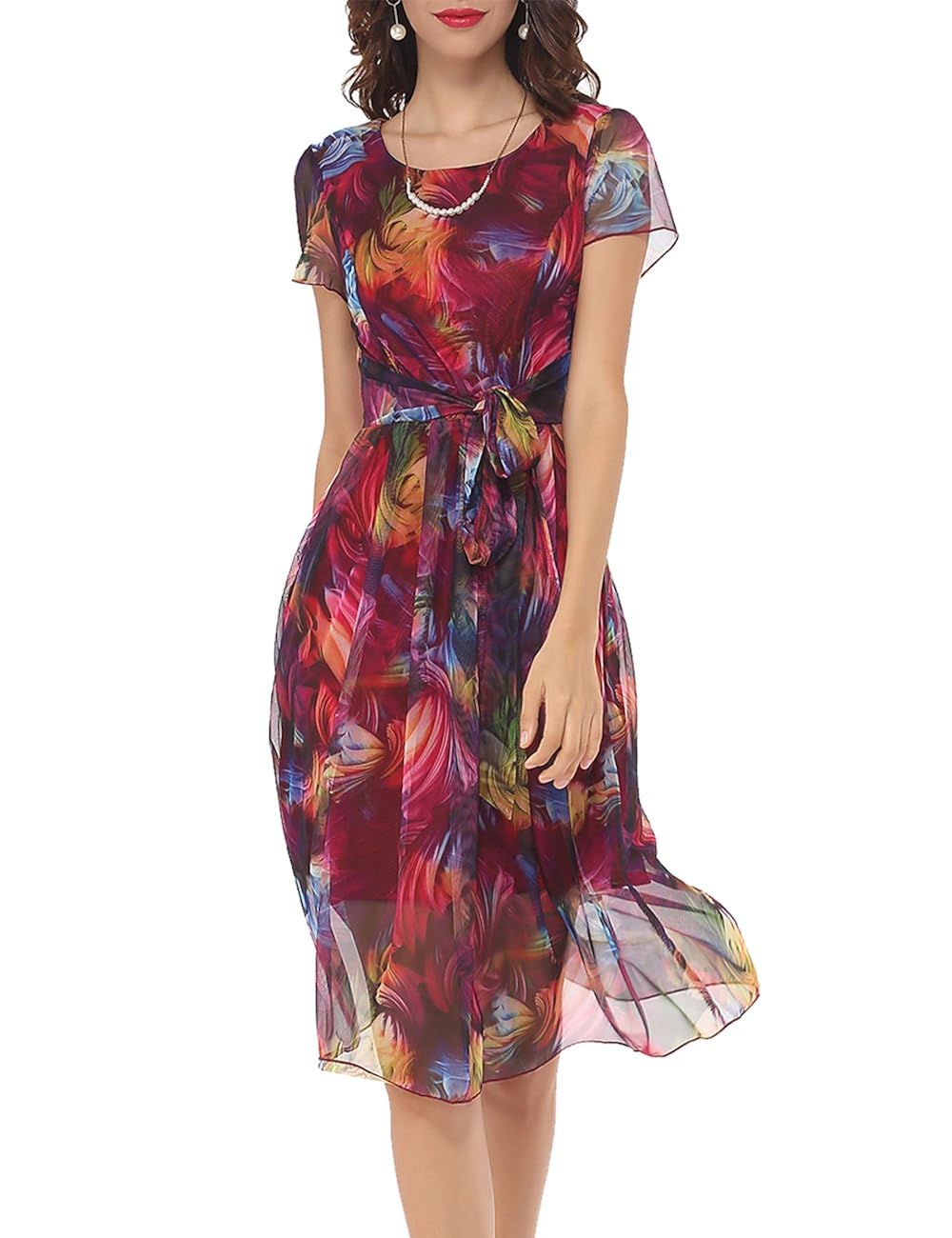 Women Floral Skater Swing Dress Evening Party Cocktail Wedding
