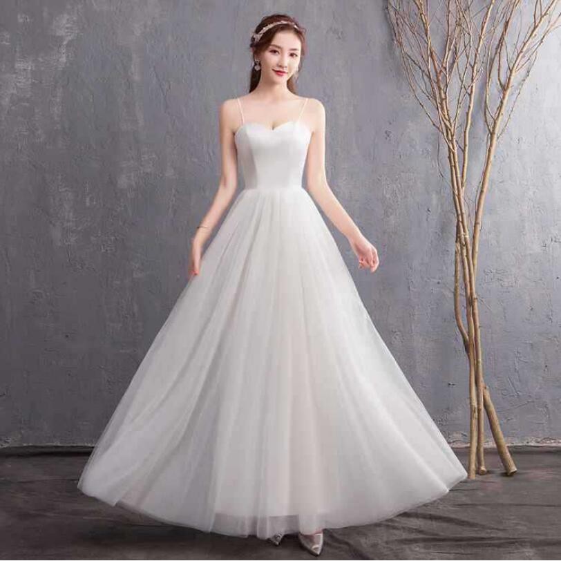 Simple Slim Fit Organza Sling Wedding Dress Evening Gown Shopee
