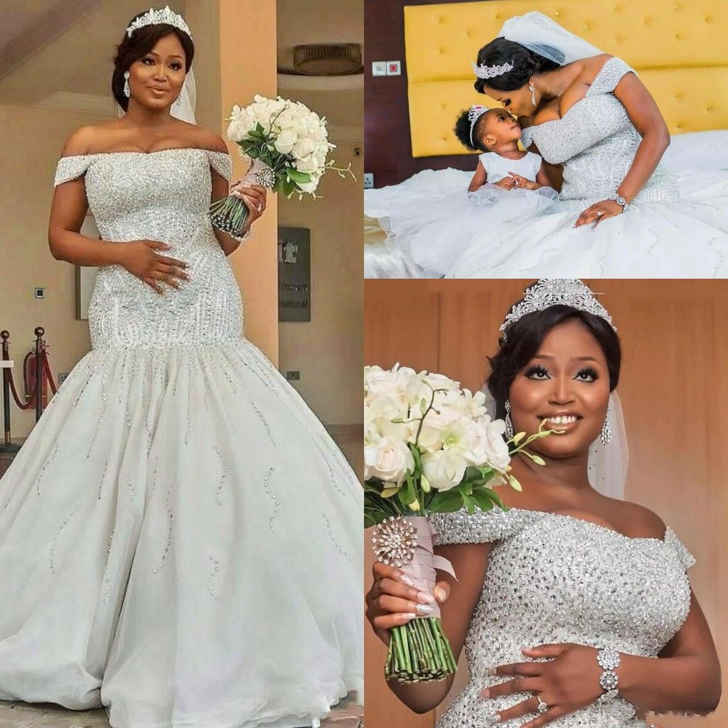2019 Sparkly Mermaid Wedding Dresses African Off Shoulder Bling
