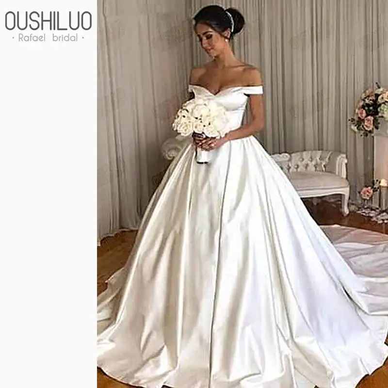 Good Value Satin Ball Gown Wedding Dress Off Shoulder Simple