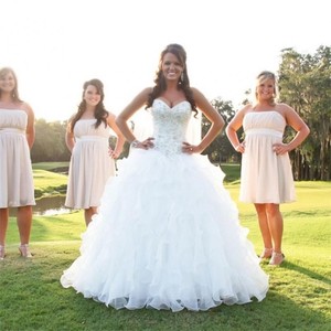 Ruffles A Line White Ivory Organza Wedding Dress Beaded Sweetheart Bridal Gown Ebay