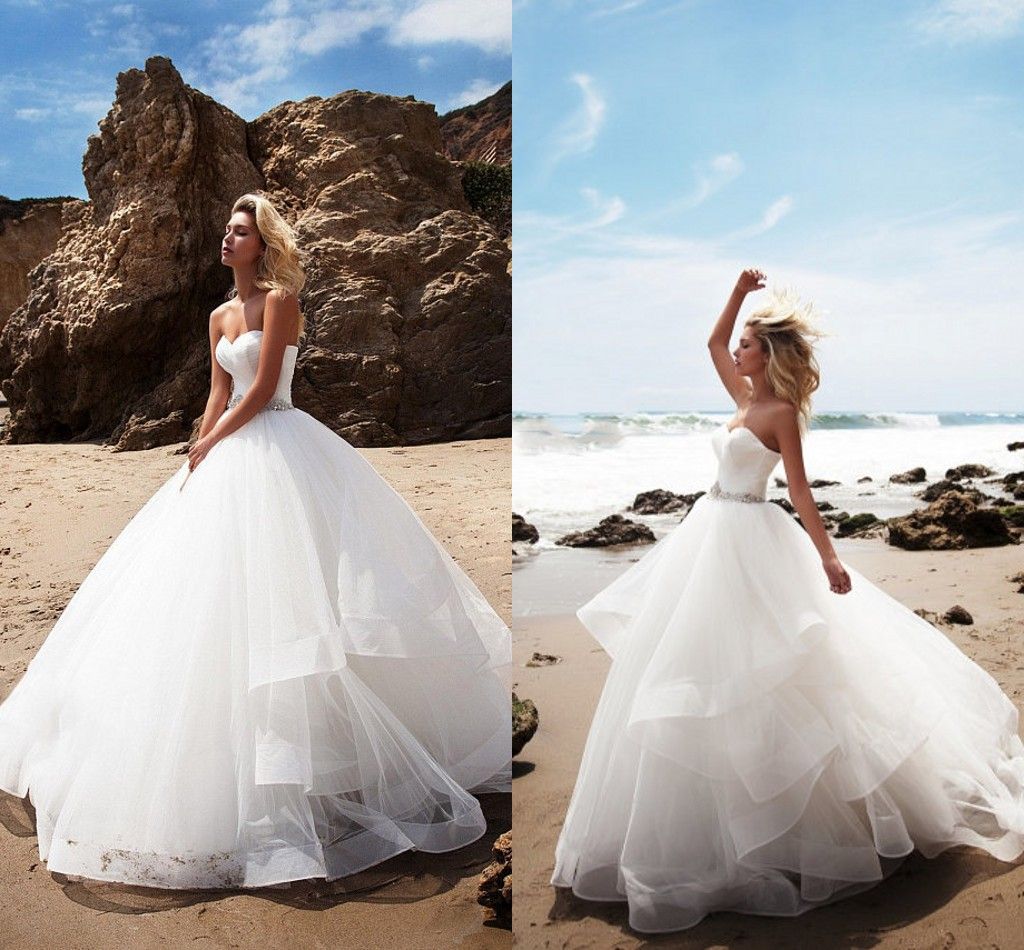 Elegant Beach Wedding Dresses Sweetheart Pleated Crystal Sash