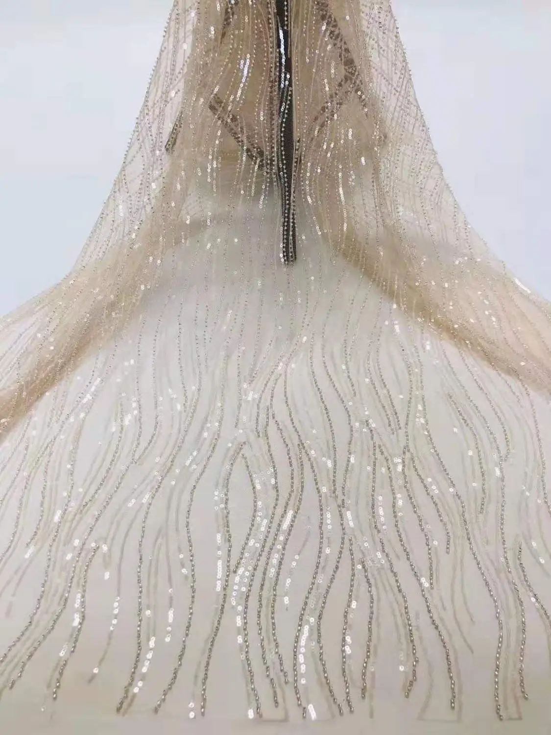 High Quality Wedding Dress Fabric Linear Sequin Embroidery French Mesh Tulle African Lace Fabric Nigeria Lace 5