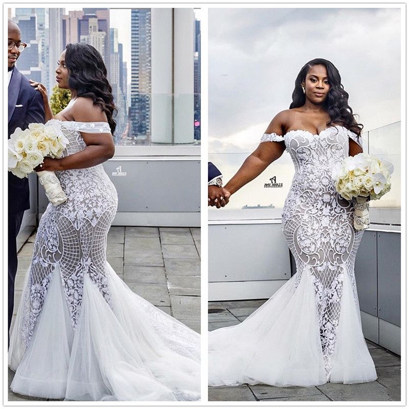 African Elegant Plus Size Lace Mermaid Wedding Dresses 2020 Off