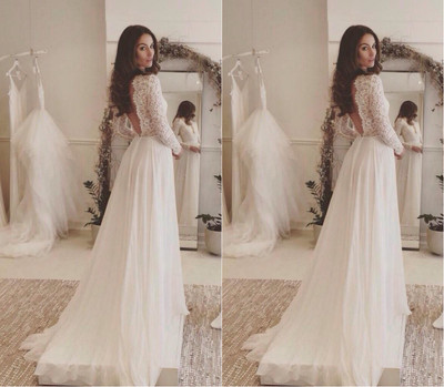 Boehmian Beach Lace Wedding Dress Crystal Belt Western Country