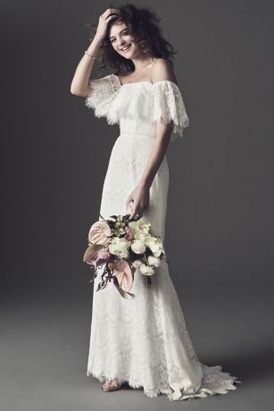 Off The Shoulder Eyelash Lace Sheath Wedding Dress David S Bridal