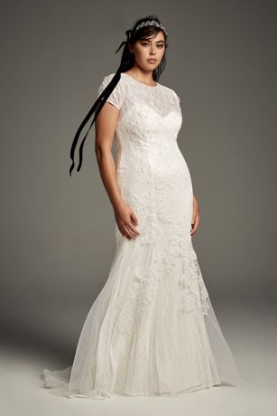 White By Vera Wang Short Sleeve Plus Wedding Dress David S Bridal