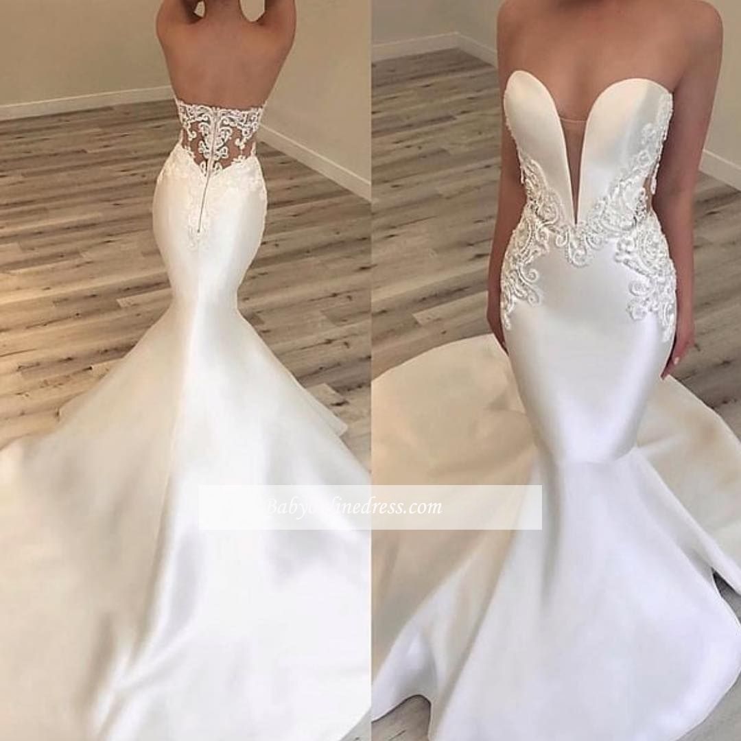 Simple Gorgeous Satin Mermaid Wedding Dresses With Long Train