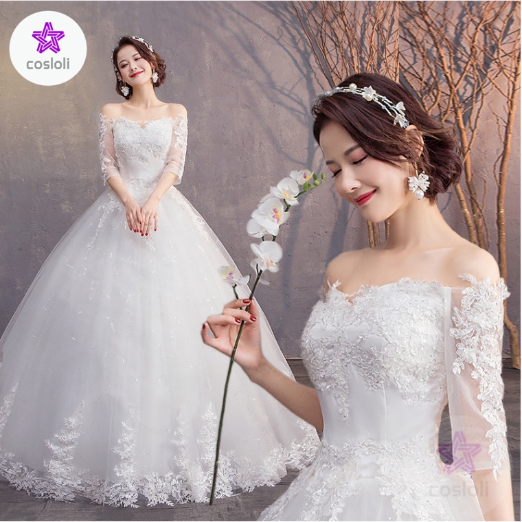 Bride Wedding Master Wedding Dress 2020 Word Shoulder White Simple Qi Wedding Dress Shopee Malaysia