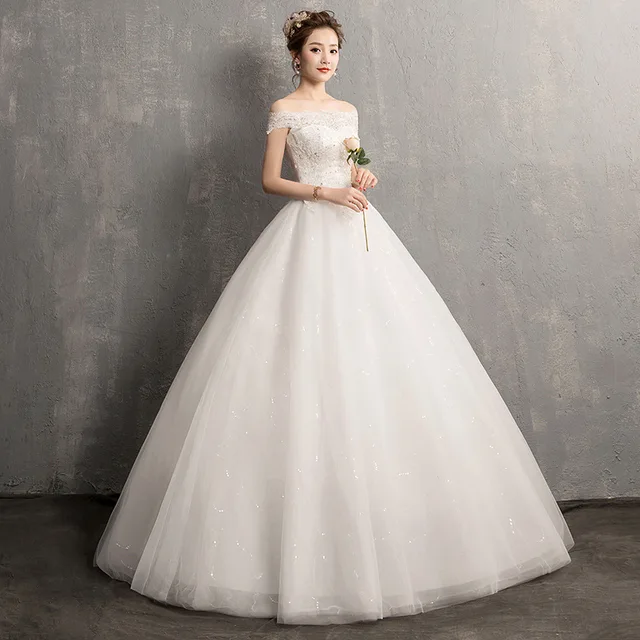 Elegant Boat Neck Lace Appliques White Wedding Dress 2019 Sexy Off