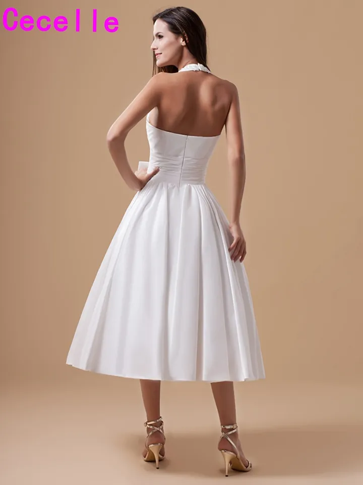 Vintage Tea Length Taffeta Wedding Dresses Halter Straps Sexy V