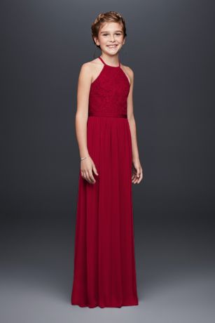 Keyhole Back Lace And Mesh Junior Bridesmaid Dress David S Bridal